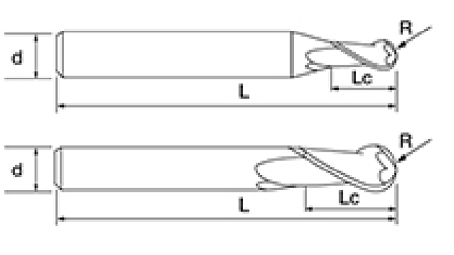 | Tidak. | Diameter D | Sudut R R | Panjang Seruling Lc | Panjang Keseluruhan L | Shank Dia d | Kiraan Bilah F |