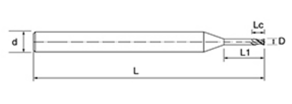 | Tidak. | Diameter D | Panjang Seruling Lc | Panjang Berkesan L1 | Panjang Keseluruhan L | Shank Dia d | Kiraan Bilah F |