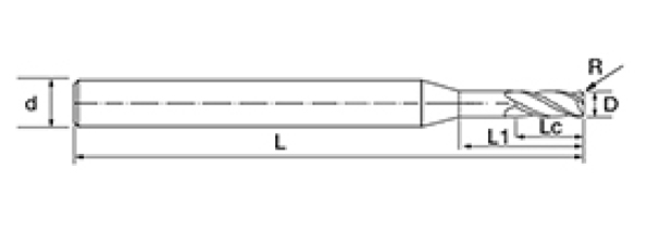 | Tidak. | Diameter D | Sudut R R | Panjang Seruling Lc | Panjang Berkesan L1 | Panjang Keseluruhan L | Shank Dia d | Kiraan Bilah F |