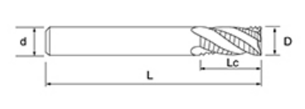 | Tidak. | Diameter D | Panjang Seruling Lc | Panjang Keseluruhan L | Shank Dia d | Kiraan Bilah F |