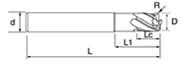 | Tidak. | Diameter D | Sudut R R | Panjang Seruling Lc | Panjang Berkesan L1 | Panjang Keseluruhan L | Shank Dia d | Kiraan Bilah F |