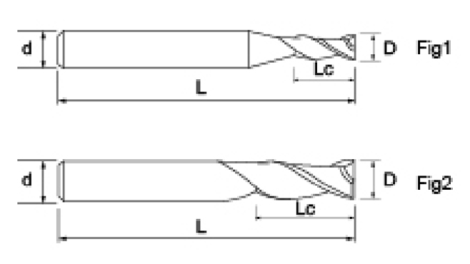 | Tidak. | Diameter D | Panjang Seruling Lc | Panjang Keseluruhan L | Shank Dia d | Kiraan Bilah F |