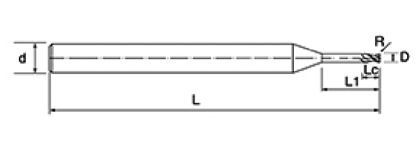 | Tidak. | Diameter D | Sudut R R | Panjang Seruling Lc | Panjang Berkesan L1 | Panjang Keseluruhan L | Shank Dia d | Kiraan Bilah F |