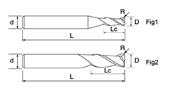 | Tidak. | Diameter D | Sudut R R | Panjang Seruling Lc | Panjang Keseluruhan L | Shank Dia d | Kiraan Bilah F |
