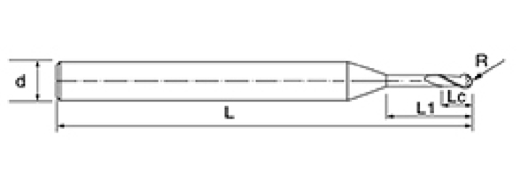| Tidak. | Diameter D | Sudut R R | Panjang Seruling Lc | Panjang Berkesan L1 | Panjang Keseluruhan L | Shank Dia d | Kiraan Bilah F |