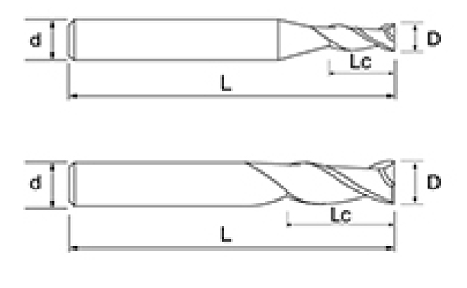 | Tidak. | Diameter D | Panjang Seruling Lc | Panjang Keseluruhan L | Shank Dia d | Kiraan Bilah F |
