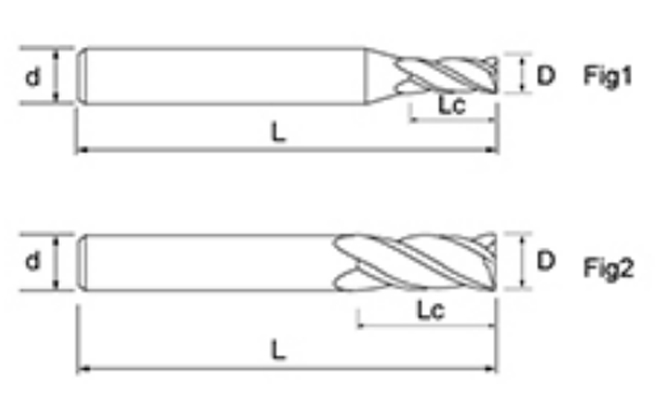 | Tidak. | Diameter D | Panjang Seruling Lc | Panjang Keseluruhan L | Shank Dia d | Kiraan Bilah F |