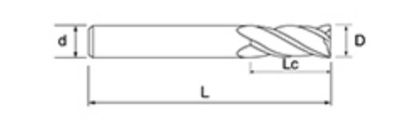 | Tidak. | Diameter D | Panjang Seruling Lc | Panjang Keseluruhan L | Shank Dia d | Kiraan Bilah F |
