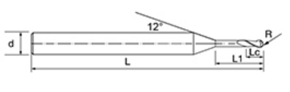 | Tidak. | Diameter D | Sudut R R | Panjang Seruling Lc | Panjang Berkesan L1 | Panjang Keseluruhan L | Shank Dia d | Kiraan Bilah F |