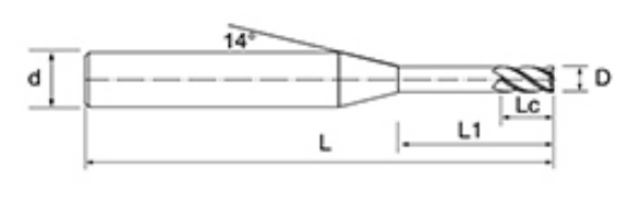 | Tidak. | Diameter D | Panjang Seruling Lc | Panjang Berkesan L1 | Panjang Keseluruhan L | Shank Dia d | Kiraan Bilah F |