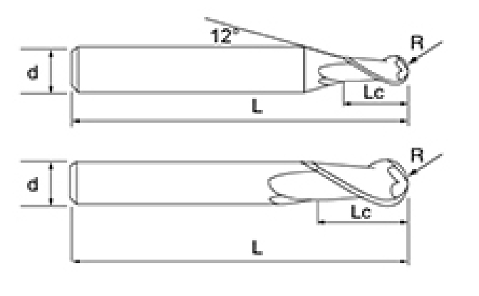 | Tidak. | Diameter D | Sudut R R | Panjang Seruling Lc | Panjang Keseluruhan L | Shank Dia d | Kiraan Bilah F |