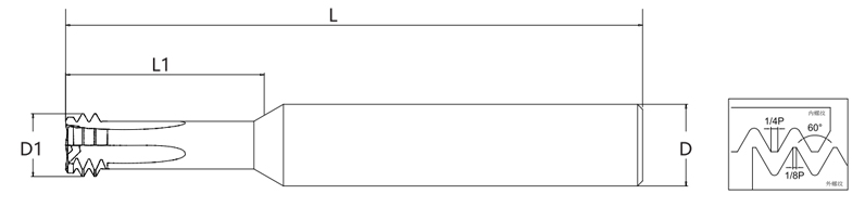 Dengan konfigurasi parameter yang fleksibel, pemotong ini menyesuaikan diri dengan keperluan pemesinan yang pelbagai. Panjang pemotongan yang lebih pendek meningkatkan ketegaran untuk aplikasi yang menuntut, manakala tepi pemotongan yang lebih panjang menampung pemesinan benang dalam. Struktur yang dioptimumkan mengurangkan rintangan pemotongan, meminimumkan beban mesin dan meningkatkan kualiti permukaan benang, menjadikannya penyelesaian yang cekap dan boleh dipercayai untuk pengilangan benang ketepatan.
